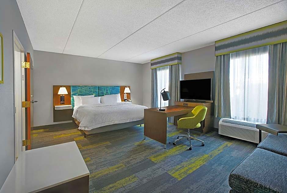 Sofa bed, work area, free WiFi, tea/coffeemaker Settle into this king studio suite and sleep deep in our clean and fresh Hampton bed®. This spacious suite includes a plush sofa bed, a TV and a tea/coffeemaker to help you feel at home. Stay productive at the spacious work desk and keep in touch with free WiFi. In the bathroom you'll enjoy fluffy towels, a WaterPik® showerhead and curved shower rod for added space and light.